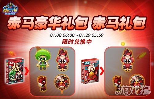 《跑跑卡丁车》2026新年礼包”赤马豪华礼包“、”赤马礼包“现已登场!在1月8日06:00至1月29日05:59期间兑换”赤马豪华礼包“可获得”葱头(无限制)”、“葱头赤马装(无限制)”、“迷你赤马(无限制)”、“赤马气球(30个)”;而在同时段内兑换“赤马礼包”则可获得“葱头赤马装(无限制)”、“迷你赤马(无限制)”、“赤马气球(30个)”~