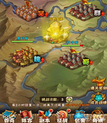今天小编给玩家们带来的是少年三国志宝藏技巧和三国无双玩法心得,在这里我为大家提一点我抽取关卡宝藏的技巧,我尝试了几次一下,少年们尽量点中间的宝藏,宝藏掉落资源多的几率会大很多。闯关章节的时候,少年们会发现分成四大阵营,例:假如我玩的是魏国,我会选择攻打虎豹骑,这样上阵魏将,可额外造成50%的伤害。