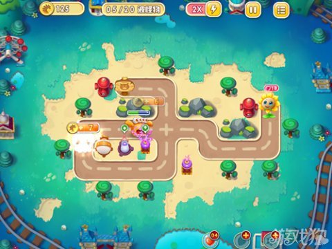 过关策略:一开始可以建造两根闪电塔,并争取在第一波过后将明星防御塔周边的石头清除,即可摆放一根减速塔以及闪电塔。之后只需升级这两根防御塔即可,其他时间就可以安心地清除后面的障碍物。