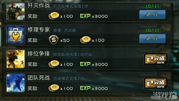 修理枪支和强化点制造最省流量而且又能快速做完这两个任务任务(修理专家、强化狂人)能得200金币和1000经验加50荣誉。