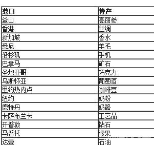 贸易港口和特产: