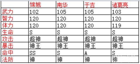 于吉:攻击神皇级,法防超神级,生命超神级,暴击神皇级,命中SSS