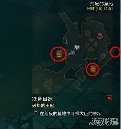 暗黑3新手任务第三章中,有一个是需要“在荒废的墓地中寻找大臣的祭坛”,拿到破损的王冠。