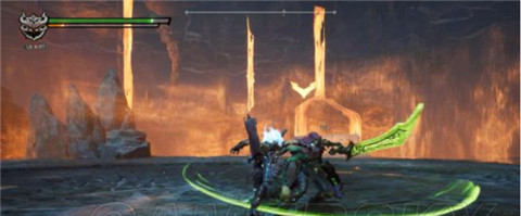 注意当它把大刀举起来,顺时针旋转的时候,它就要放大了,这是个范围性攻击提前躲远点。