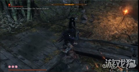 这样的攻击方式,boss不会还手,即使它召唤狼来帮它作战,狼群也不会到桥上来的,一直打到boss的架势条涨满,然后忍杀。
