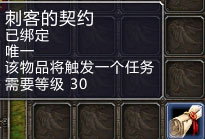 2、任务物品“刺客的契约”掉率暂定为100%,我打了 2 个就掉了 2 个(当然只能拿 1 个),因此可以判定即使不是100%也是高概率掉落。