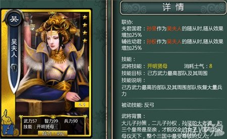 吴夫人拥有很高的智力和十分适合奶妈的弓兵类型,绝对是啪啪三国第一奶妈啊。