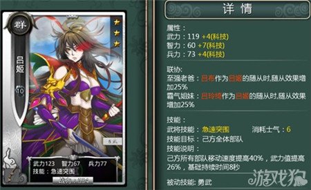 其次吕姬的技能也是游戏中稍有的无差别强化,强化所有己方部队