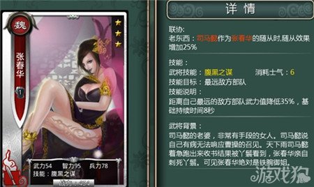 啪啪三国女将是游戏中的一种重要的武将组成部分,她最主要的用处就是被用来作为侍女增加战斗初始士气值。同时有的女将也被玩家加入武将阵容,具体请看小编带来的攻略。
