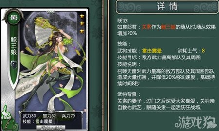 有着不错的武力和兵力,加上将军型平衡的成长是很不错的坦克哦。再加上那销魂的眼神和表情,绝对对得起小三的地位。可惜的是技能职提升自己,前期没有侍女的情况下很少会使用。