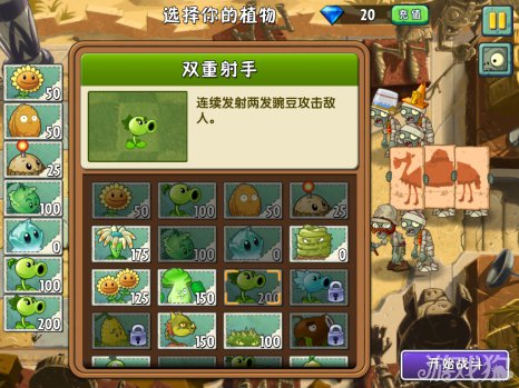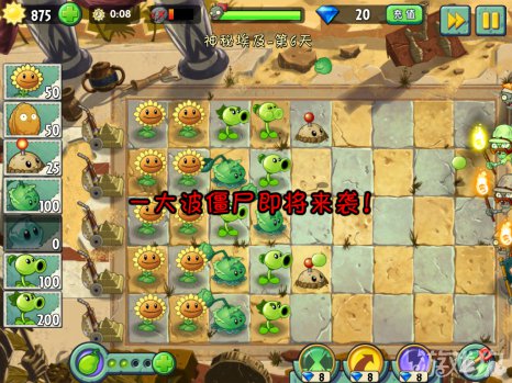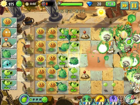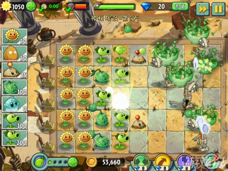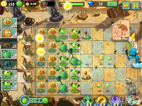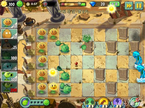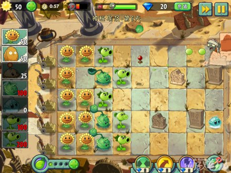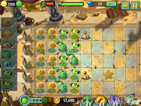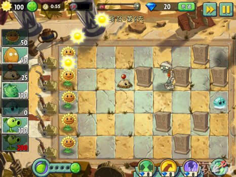 建议每行最少是两个植物来攻击僵尸。不限制种多少棵植物,种满屏幕的都没有关系。这么多的植物刚好能够完成60秒内部使用阳光的条件。