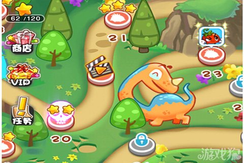 燃烧的蔬菜大家也都很熟悉的,之前一和二就出来了,也是各种地图,玩的方式也没有变,不过怪物变了,先来快速的浏览一下整个游戏的流程吧,进入的时候会有签到,小编觉得可以每天一签,即使你不玩,点进来一下也不费时间还可以得到免费的宝箱。 里面的关卡是一关一关的,会有三星的设计,不过看看整体的是在森林里面的,感觉连恐龙都变的这么可爱。 在你种蔬菜的地方会有一个幸运树,里面会有宝箱和宝石,宝石是免费拿的,开箱子就需要金币啦。