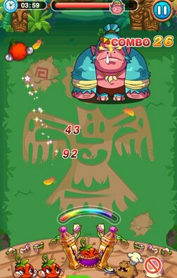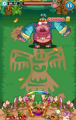 除了冲撞技能,无敌大金刚还会投掷巨石攻击,需要用蔬菜攻击3次才能击碎巨石。