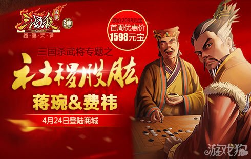 蒋琬&费祎,国战君临天下 ·阵的扩展武将卡牌。4月24日开始加入国战套餐,原价2098元宝,首周优惠价1598元宝。