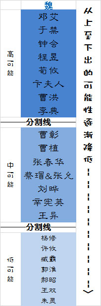 司马昭,司马师,为“帝王”者这种会让人有魏不魏的感觉。郭淮,钟会什么的为将者倒是不会出问题。而汉献帝,皇甫嵩,卢植,这几位真正的大汉核心也不能出现在群中。像是跟董卓,貂蝉,吕布关系密切的王允等人倒是可以。