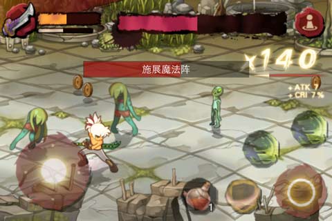 这个boss拥有着施展魔法阵的技能。会在人物的脚下出现一个魔法阵对其造成伤害,所以玩家在boss施展技能的时候一定要不停的跑动,直到boss技能释放完!