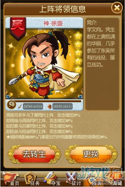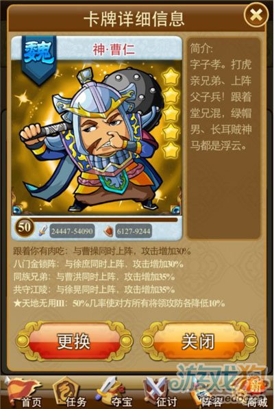 PS:三星武将可通过任务,闯关获得,四星可通过闯关最后的免费扭蛋有几率获得。
