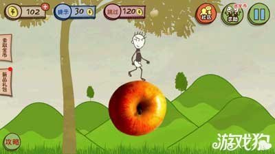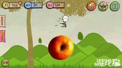 史上最坑爹的游戏3如果让苹果停下攻略。本关的苹果就是一个跑步机,坑爹男在上面跑步。虽然说跑跑步对身体有好处,但是一直跑下去也会导致人的身体负担过大的。坑爹男这么一直跑下去迟早会被累死,然后灰飞烟灭的。玩家还是要想想办法,怎么把这个苹果停下来。