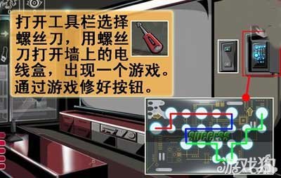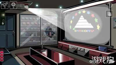 修好电路后点击边上的按钮将投影布升起来,升起来后可以看到密码箱。