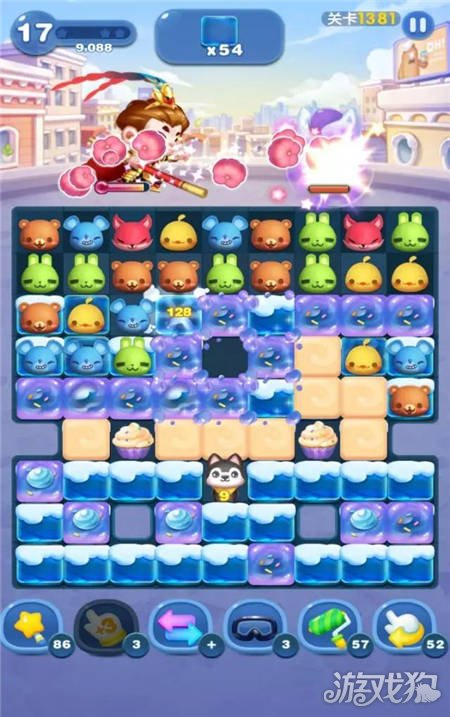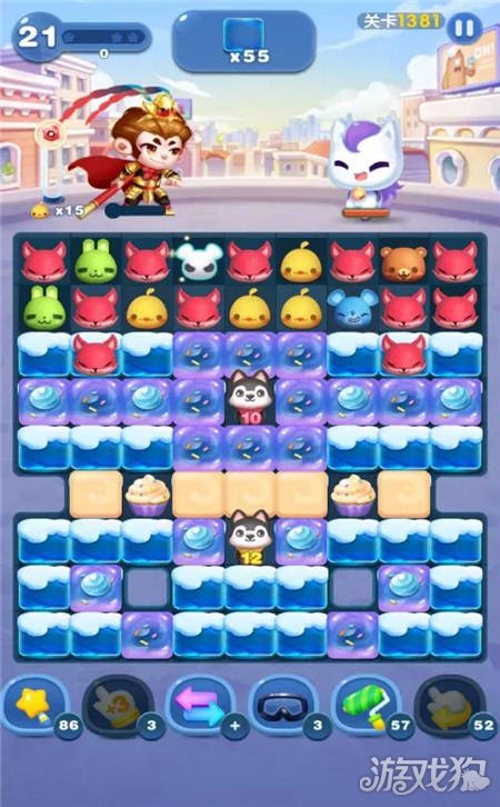 如果有特殊元素,尽量用其来消除哈士奇身上数字颜色的小动物。消除冰块时可以先行选择远离哈士奇的进行消除。