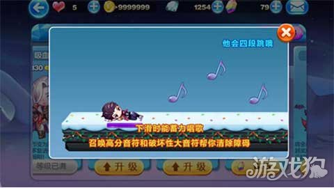 威廉学长下滑时能蓄力唱歌,蓄力越久表现分越高;蓄力充能完毕后,松开下滑会召唤高分音符破坏障碍物的同时带来高额得分。