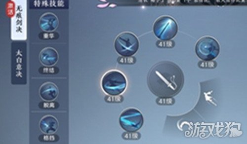 飞燕逐月:消耗三格剑意,根据消耗剑意的数量对前方范围内的敌人发起4、8、11段攻击,释放三格剑意的飞燕逐月在最后一击释放过程中隐身不可被选中。