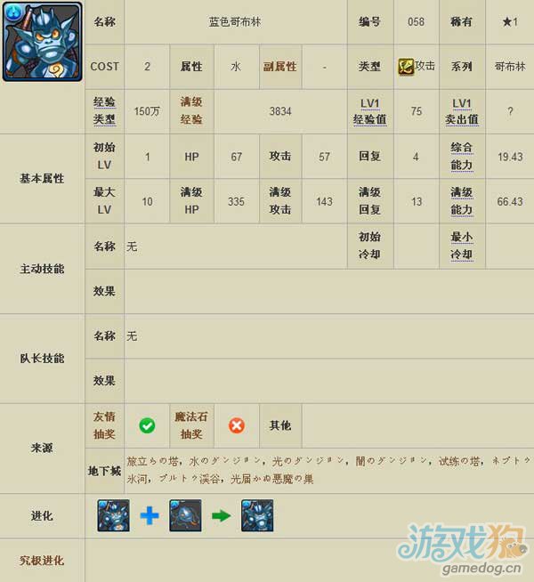 蓝色哥布林是水属性的宠物,主动技能无,队长技能同样无,更详细的资料请看下面的介绍。