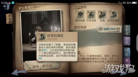 其三是坚强,能在椅子上坚持多百分之30时间,即使上椅子也飞飞慢方便队友救援和拖延时间给队友破译密码。其四是战争后遗症,佣兵破译密码会降低百分之25速度,受伤治疗时间需要增加百分之50,建议尽量不要受伤注意好转点。