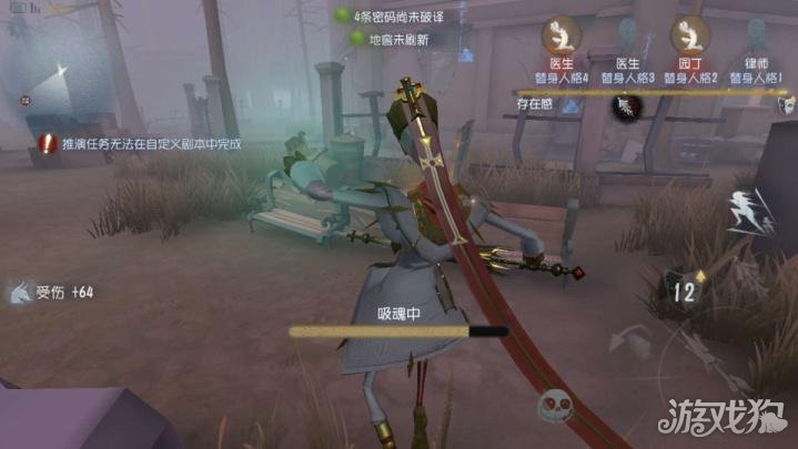 4.颠倒键位,在求生者中第一个铃时的60秒内,再用一次铃,求生者的键位颠倒,很容易往自己所在的方向跑。