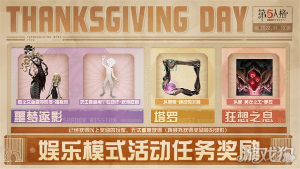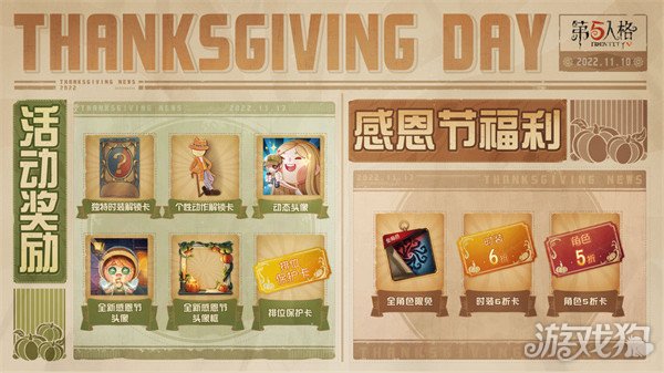 第五人格2022年感恩节活动的时间是11月18日开启。